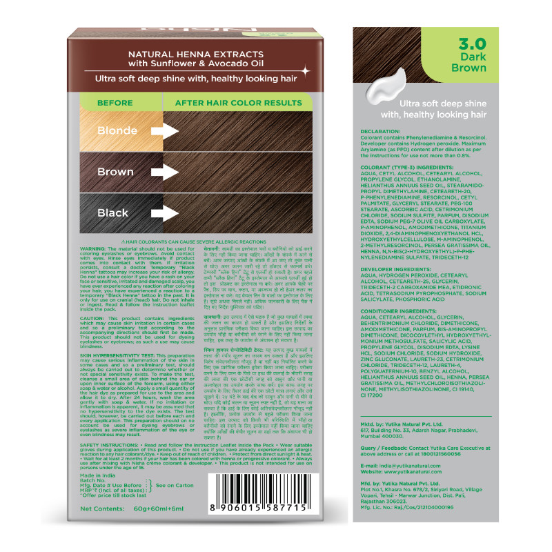 Nisha Creme Hair Color offers 100% grey coverage, leaving your hair soft, silky, and stylish. Henna conditions and enhances hair texture, while Sunflower and Avocado extracts provide essential nutrients for strength and shine.